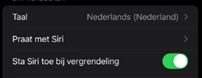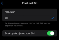 Wil je Siri ook niet meer activeren doormiddel van de zij of thuisknop? Dan kan je in het menu van stap 4 het schuifje achter ‘druk op de zijknop voor Siri’ naar links zetten.
